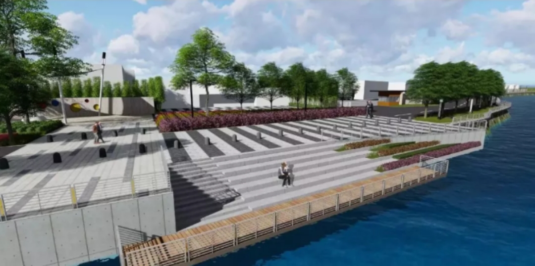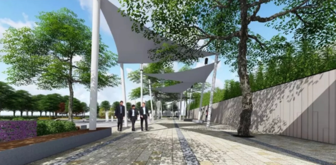 濱江長廊分為三個功能區(qū)域。其一,總長達600米的濱江走廊,具備徒步健身等基本功能,沿途貼心設(shè)置了多個休息座椅,走廊內(nèi)側(cè)由色彩斑斕的植物組成灌木帶,在這里即可健身賞景,也可小憩一番,感受慢生活的從容與智慧;其二,沿江修建親水平臺,在平臺上俯身即可觸及水面,階梯式的觀景平臺,能為游客提供多視角的觀江體驗。其三,文化廣場設(shè)立了噴泉、文化墻、揚帆之路等多個景點,滿足群眾各類集聚娛樂或文化活動的場地需求,當夏夜來臨之時,伴隨著蟬鳴之聲,別有一番情調(diào)。